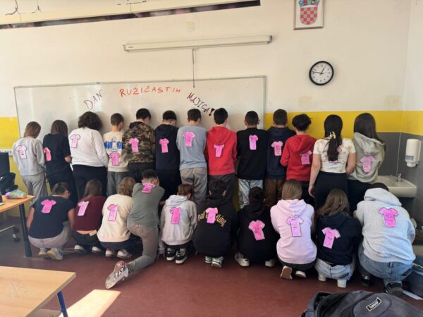 Sljedeći dan učenici su odjenuli ružičaste majice kako bi pokazali da nasilju nema mjesta ni u našoj školi ni izvan nje. Time smo zajedno poslali poruku da je poštovanje uvijek jače od mržnje.