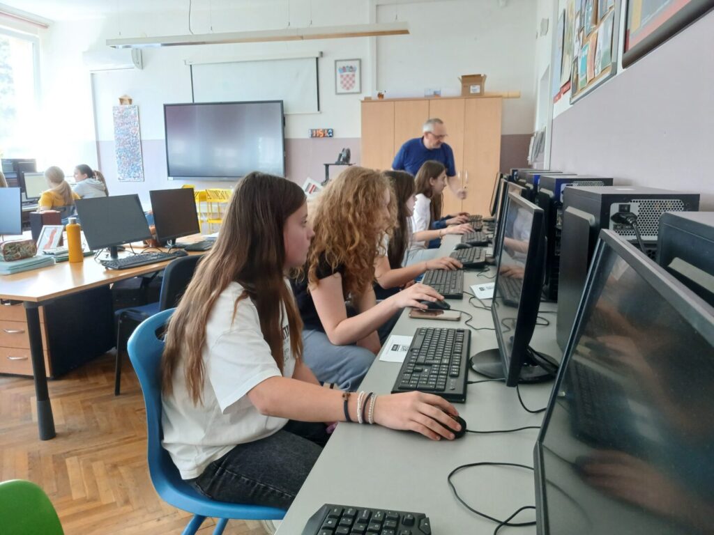 Istraživanje EU Kids Online u našoj je školi provedeno 14. svibnja 2025. godine, a na listi škola u kojima se provodi istraživanje našli smo se slučajnim odabirom. Ispitivanje je provedeno s učenicima 4. – 8. razreda u informatičkoj učionici.