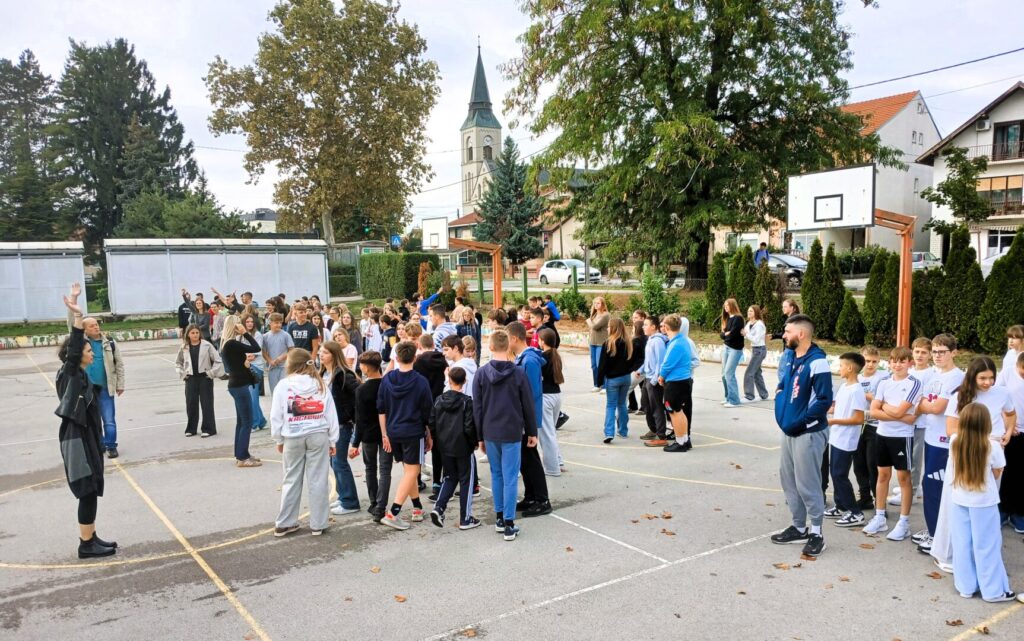 Sve je započelo aktiviranjem alarma, nakon čega su svi sudionici, prema unaprijed utvrđenim procedurama, napustili školsku zgradu i okupili se na sigurnosnom mjestu.