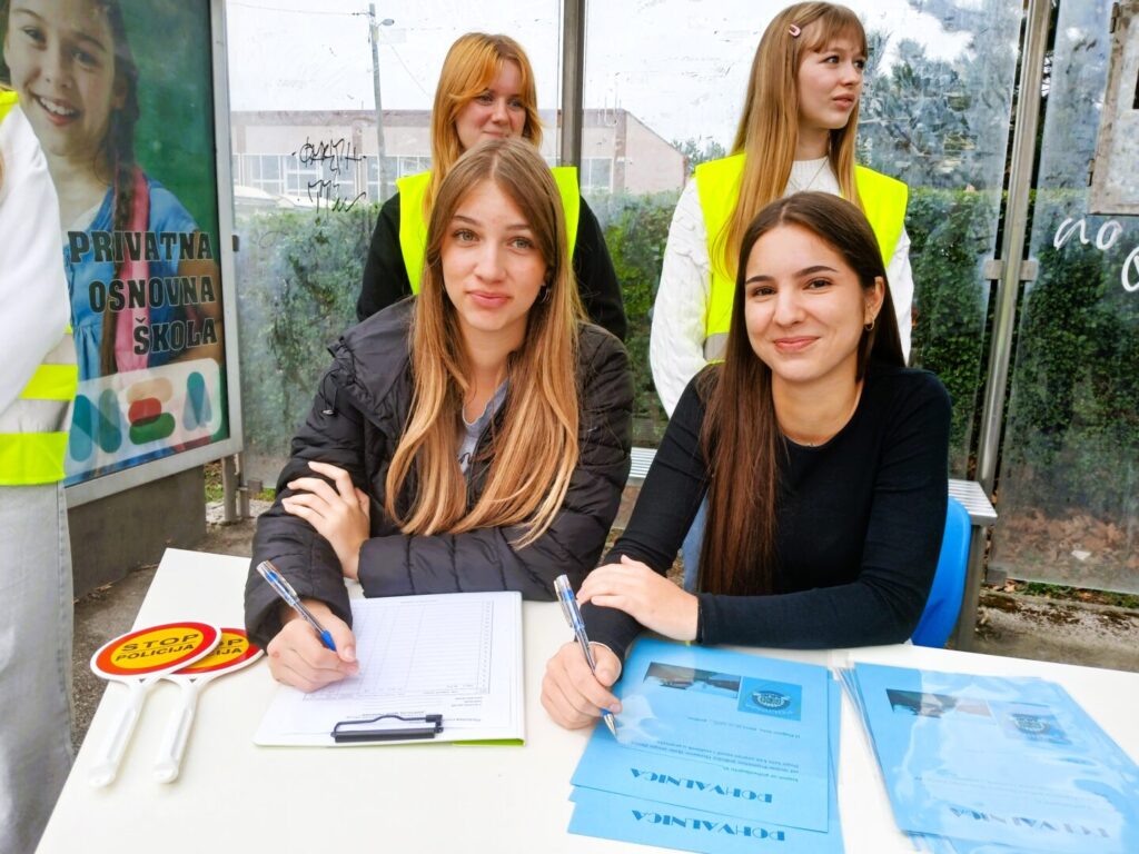 Dok su jedni zaustavljali automobile i postavljali vozačima pitanja o osobnim dokumentima, dvije učenice preuzele su zadatak zapisivanja registarskih oznaka, imena vozača te dodjeljivanja pohvala i opomena, ovisno o poštivanju pravila.