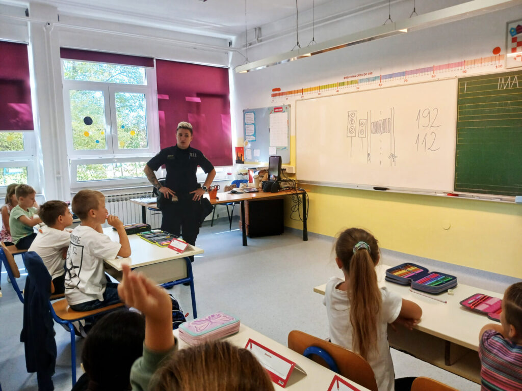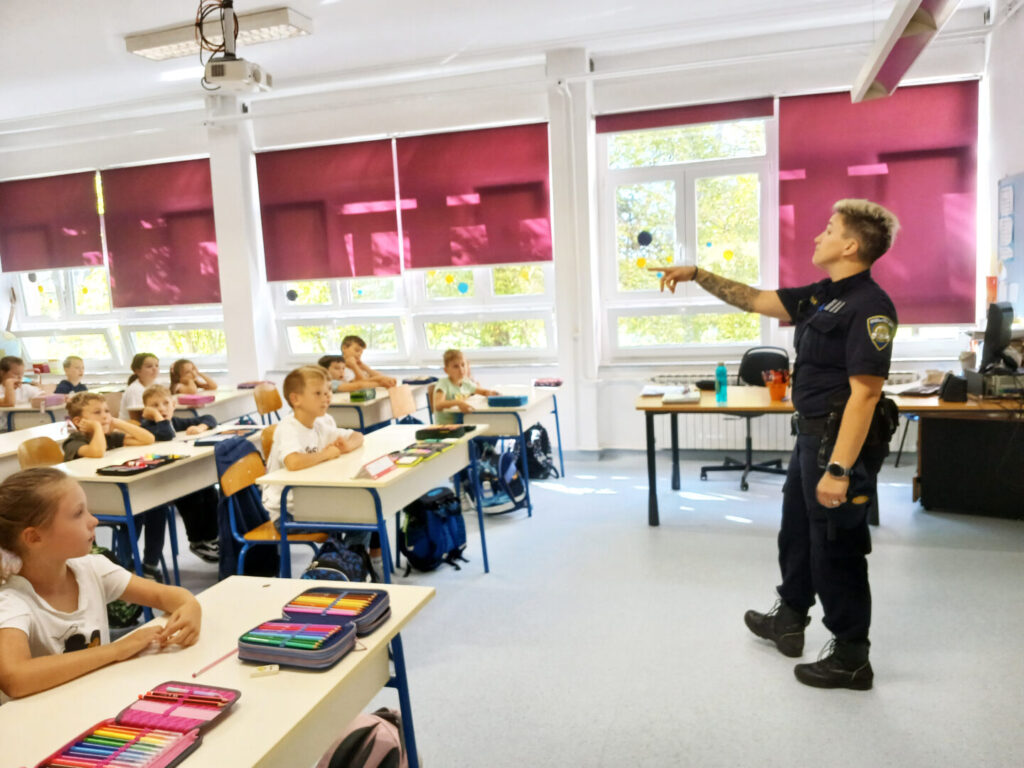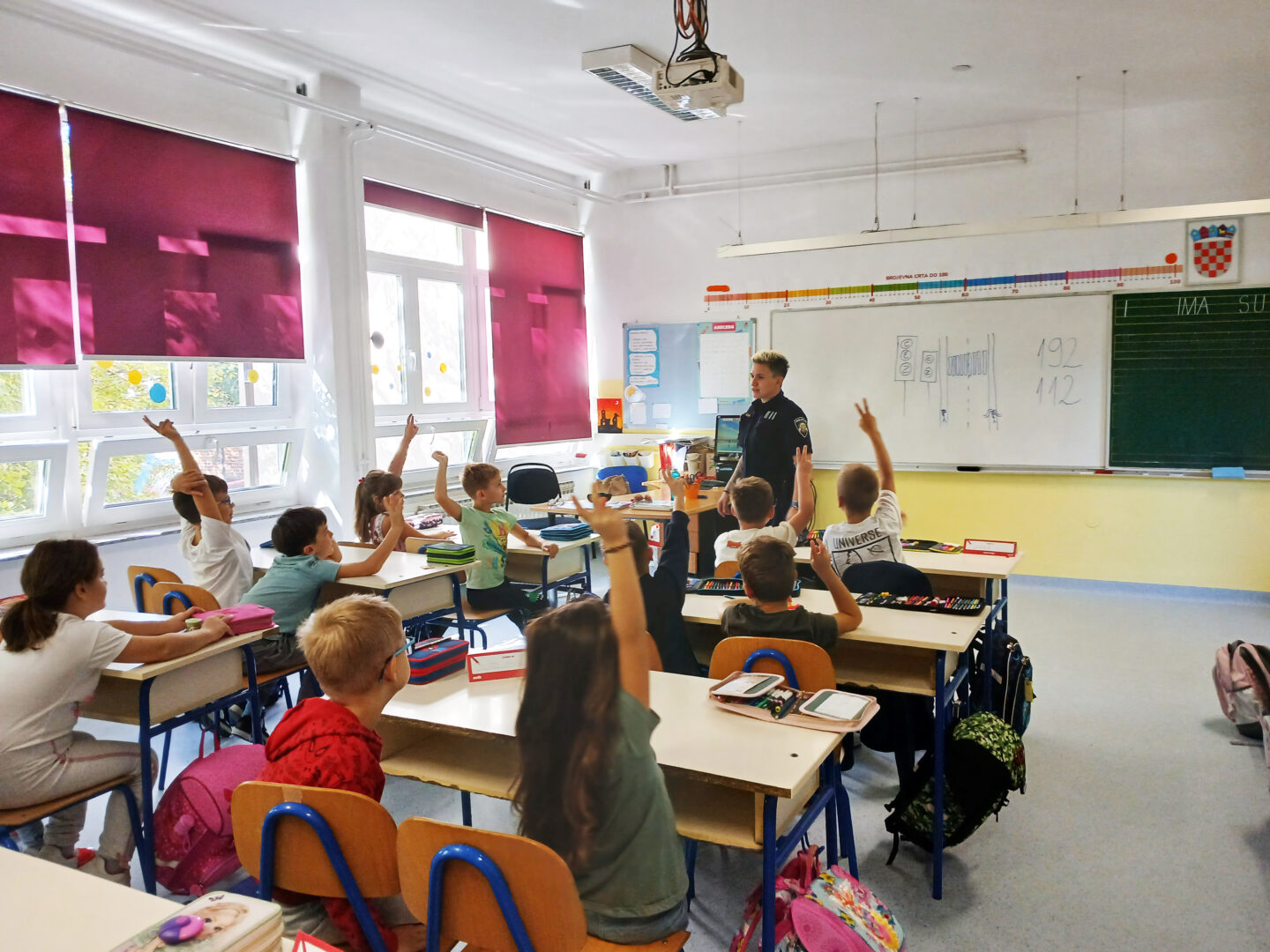 U sklopu akcija „Djeca, prijatelji u prometu“ i „ Poštujte naše znakove!“ našu su školu 22. i 23. rujna 2025. posjetili policijski službenici. Cilj njihova posjeta bio je educirati učenike prvih razreda da budu sigurni i odgovorni sudionici u prometu. Nakon predavanja posjetile su ih naše Radoznale reporterke Matea Matacun i Jana Šimić, 7. d,  i razgovarale s njima o svemu što su naučili i kako im je bilo na predavanju.