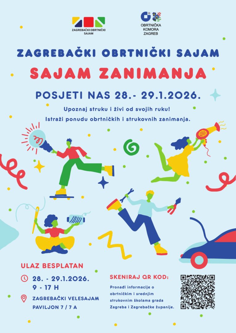 U srijedu i četvrtak, 28. i 29. siječnja 2026., na Zagrebačkom velesajmu (paviljoni 7 i 7A) održava se 11. Zagrebački obrtnički sajam – Sajam zanimanja, koji organizira Obrtnička komora Zagreb. Ovaj događaj posvećen je promociji obrtničkih i strukovnih zanimanja te poticanju učenika na razmišljanje o izboru srednjoškolskog obrazovanja i mogućnostima koje strukovna zanimanja pružaju.